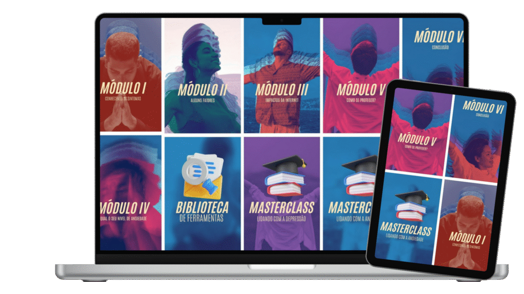 O programa “Fortaleza Interior” é o seu guia audiovisual, com mais de 25 aulas práticas divididas em módulos, para ajudá-lo a navegar os desafios da ansiedade e dos sentimentos depressivos com clareza e esperança.