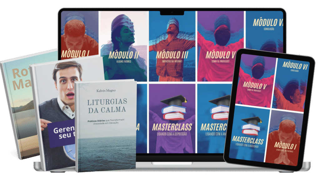 O Guia Principal: E-book “Liturgias que Acalmam” O mapa completo com as 4 Âncoras da Paz para momentos de crise e o passo a passo detalhado para construir hábitos que fortalecem sua mente e formam um coração sereno. (Valor: R$ 97,00)
